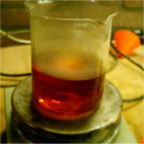 The solution was heated to 95?C and after 90 minutes of heating the orange solution was allowed to cool down.