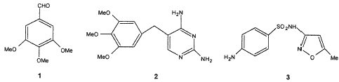 The most important use of 3,4,5-trimethoxybenzaldehyde 1 as a pharmaceutical intermediate is to prepare the antibacterial agent trimethoprim 2,1-2 which is a potent and selective inhibitor of bacterial dihydrofolate reductase. Trimethoprim is used solely, or in combination with sulfamethoxazole 3, to treat a wide range of bacterial infections in humans and poultry.