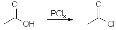 Connect a dry 250 ml three neck flask with a distillation adapter, condenser and addition funnel. Use a 250 ml rb flask for the receiver connected to the condenser with a vacuum adapter. Use the vacuum adapter to make a gas trap with rubber tubing to an anhydrous CaCl2 drying tube exiting to an inverted funnel suspended over a beaker of water. This important stage is to protect the distillate from water while absorbing HCl evolved in the reaction. Place 54 g. (52 ml.) of glacial acetic acid in the three neck flask, close with a stopper and add slowly through the addition funnel 46 g. (29 ml.) of phosphorus trichloride. Cool the flask by immersion in a water bath. Mix the reactants thorougly and, after allowing the mixture to stand for ten minutes, heat the water bath to 40-50°C and maintain it at this temperature for thirty minutes, with occasional swirling of the flask. During the heating the liquid usually separates into two layers. Acetyl chloride forms the upper layer. Distill the acetyl chloride by heating the water bath to boiling and maintaining it at that temperature as long as any liquid passes over. Cool the receiver in an ice bath during the distillation. The syrupy residue in the distilling flask is phosphorous acid, which is discarded. CAUTION: The reaction mixture must not be overheated since this will lead to formation of phosphine, which is spontaneously flammable in contact with air. To the distillate add two drops of glacial acetic acid, to destroy mixed phosphorous-acetic anhydrides that would cause turbidity to develop on standing. Redistill the acetyl chloride from a distillation apparatus arranged as before except without the addition funnel and with a thermometer. Collect separately in a dry receiver the portion boiling at 50-56°C and transfer it to a dry weighed glass-stoppered bottle. Acetyl chloride attacks corks and rubber stoppers. The yield is 44-56g. Acetic Anhydride