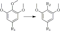 The 2-methoxyl group of 1,2,3-trimethoxybenzene and its 5-methyl-substituted homologue is removed under reductive electron transfer conditions and replaced with an alkyl group in a one-pot procedure.