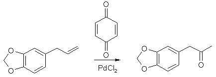 This step has been called the Wacker Oxidation. It uses PdCl2 as a catalyst to put and oxygen across a double bond. This step has been worked over many times so do not change the amounts for the fabled 'scale-up'. If you do this correctly, you will have more MDMA.HCl than you know what to do with. (Thanks Strike!)
