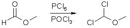 In a fume cupboard equip a 500-ml three-necked flask with a dropping funnel, a mechanical stirrer, a thermometer and a reflux condenser, using a double-neck adapter (Fig. 2.15) to accommodate the last two items. Protect the condenser and dropping funnel with calcium chloride guard-tubes. Place 50 ml of phosphorus oxychloride and 156 g (0.75 mol) of phosphorus pentachloride in the flask and 48 g (49 ml, 0.8 mol) of methyl formate in the dropping funnel. Cool the mixture to 10°C and add the methyl formate dropwise at such a rate that the reaction temperature does not rise above 20°C (about 1 hour). When the addition is complete, remove the ice-bath, stir the mixture until all the phosphorus pentachloride has dissolved, keeping the temperature below 30°C by occasional cooling. Remove the stirrer, condenser, thermometer and dropping funnel, stopper the two side-necks and insert a simple distillation head into the central neck. Introduce a pine splint to serve as anti-bumping device (*) and attach a condenser leading to a receiver flask a receiver adapter for vacuum distillation. Distil the reaction mixture under reduced pressure (water pump) on a water bath at about 60°C and collect distillate in a flask cooled to -25 to -30°C in a cooling bath (acetone-Cardice or ice-salt). The distillate weighs 209 g and consists of a mixture of dichloromethyl methyl ether (b.p. 85°C) and phosphorus oxychloride (b.p 105°C). Fractionally distil the mixture at atmospheric pressure through a 50-cm column filled with glass helices and surrounded by a heating jacket at 60°C, using a reflux ratio of about 1:8. Collect the fraction which boils between 82 and 95°C and refractionate to give 70g (76%) pure dichloromethyl methyl ether, b.p. 85°C. Protect the product from moisture. (*) A conventional capillary air leak, inserted into a side-neck, should only be used in this case if the air supply is pre-dried since the product is susceptible to decomposition by moisture. Reference: Vogel, Practical Organic Chemistry, 5th Ed. p 582-583 |