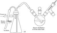 You can use many types of steam traps with your distillation setup. I've shown two (Fig. 107a/107b), but these are not the only ones, and you may use something different. The point is to note the steam inlet and the trap drain, and how to use them.
