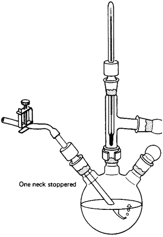 If one of the components boils below 70°C and you use a Bunsen burner, you may have a hard time putting out the fire. Use a steam bath or a heating mantle. Different distillations will require different handling (see Chapter 18, "Sources of Heat"). All the distillations always require heating, so Chapter 18 is really closely tied to this section. This goes for enlightenment on the use of boiling stones and clamps as well (see Chapter 17, "And Now-Boiling Stones" and Chapter 19, "Clamps and Clamping").