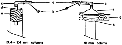 Typical column sizes used are shown in Table I. The five smaller columns are packed and run as described in Figure 1. For the four smallest, commercial7 columns are used as received. Air pressure is introduced through a glass tube inserted through a one-hole rubber stopper in the top of the column (Figure 2). It is convenient to maintain column pressure with laboratory compressed air, delivered through a length of Tygon tubing having a small syringe needle inserted in it for a bleed.3 The same procedure is followed for the 50-g column, except that the top of the commercial column is modified by attaching to it a female 35/20 ball joint. The male joint is necked down to a tubing connector for the air line and secured to the female joint with a screw clamp (Figure 2). The three largest columns8 are also packed and run as described, except that aspirator vacuum9 is substituted for air pressure. Fractions are collected in Erlenmeyer flasks by using a vacuum adapter as shown in Figure 3. Again, it is important to close the stopcock at the bottom of the column before releasing the vacuum to change fractions.