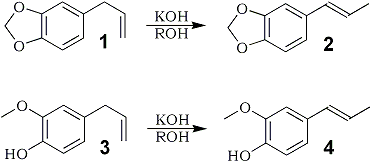 The results showed that the isomerization reactions were fastest for safrole in 1-butanol5 and for eugenol in glycerol, using either the method of microwave irradiation or conventional reflux.