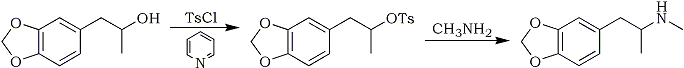 Has anyone ever heard of MDMA being produced by a Markonikov hydration of safrole and conversion of the alcohol to an alkyl tosylsulfonate (via rx with tosyl chloride) followed by SN2 amination with methylamine? This synthetic pathway would be very similar to the bromination/debromination pathway that is recently in vogue, and might be even simpler. Plus tosyl chloride is dirt cheap ($23 for 1kg).
