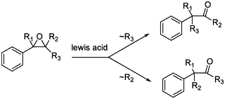 Epoxides are very important and versatile intermediates in organic synthesis since they can be readily transformed into a variety of functional groups1. One of the useful synthetic routes to aldehydes and ketones from epoxides is the Meinwald rearrangement2. This reaction could be performed in the presence of various Lewis acids. The nature of the obtained product depends on the migratory aptitude of the substituents on the epoxide group but also on the nature of the Lewis acid and the solvent (Scheme 1)3,4,5,6.