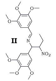 With nitropropane in acetic acid, the solid product was identified as 3,4,5-trimethoxybenzonitrile4, and substitution of isopropyl alcohol for the acidic solvent led to unexpected formation of the Schiff base II, mp 151.5-152°C from methanol, the structure of which was established by analysis and its facile acid hydrolysis to trimethoxybenzaldehyde and, after neutralization, 1-(3,4,5-trimethoxylphenyl)-2-nitrobutylamine. Replacement of the ammonia catalyst with a secondary amine precluded the formation of II, and led to a proper nitrostyrene. The properties and yields of the substances studied appear in the Table.