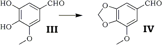Methylenation of 3,4-Dihydroxy-3-methoxybenzaldehyde (III)