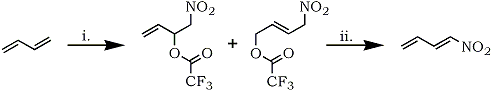 Nitryl iodide, a pseudohalogen reagent, available via the reaction of silver nitrite with iodine was introduced in 193283. The synthetic application of the reagent under mild conditions was described by Hassner and co-workers84 for the selective synthesis of β-iodonitro-, vinylnitro- and nitroalkanes.