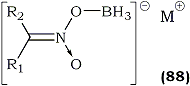 These reactions presumably occur through a common intermediate (88), which can then be hydrolyzed directly to nitroalkanes or reduced with a borane complex to yield hydroxylamines after hydrolysis. Indeed, it was found that sodium borohydride catalyzes the reaction of borane complexes with conjugated nitroalkenes11a (Eq. 26).
