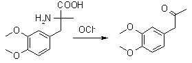 The transformation of alpha-methyl-DOPA diethyl ether to 3,4-dimethoxyphenylacetone (V) was effected oxidatively with sodium hypochlorite1 in 90% yield. Thus, the total sequence (Chart I) from alpha-methyl-DOPA to 3,4-dimethoxyphenylacetone, consisting of the four steps, acetylation, methylation, hydrolysis, and hypochlorite oxidation, can be effected with a potential overall yield of 90%.