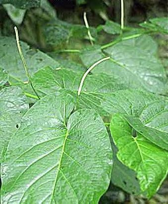 Piper auritum too, Mo xi ge hu jiao or, Mo xi ge hu jiao ye. This one has the erstwhile scientific pseudonyms Piper sanctum and Artanthe sanctum, of course referring to the Mexican pepperleaf, Sacred pepper, or Veracruz pepper. The Spanish names are Acuyo, Anisillo, Cordocillo, Hoja de Ajan, Hoja de Santa Maria, Santilla de comer, Hoja santa, Yerba santa, and others regionally. It's sacred and a comestible at the same time. Piper aduncum and Piper auritum. These are not cute little pepper bushes for long. By their second season they shoot up into fuckin TREES, leave them alone and they will reach 6 meters into the air. It's a jungle out there, dripping with (well, half of 1%) essential oil. Fast growing, well you might call it that. Then it grows up...