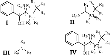 In accordance with another aspect of the present invention, there is provided a method for producing a 1-phenyl-2-nitroalcohol of the Formula I. The 1-phenyl-2-nitroalcohol produced by this method, likewise, has a (1R*,2S*) stereoisomer and a (1S*,2R*) stereoisomer. The method comprises the step of reacting benzaldehyde with a nitroalkane of the Formula II wherein m and R are as defined above. The reaction is carried out in the presence of an amine catalyst. The 1-phenyl-2-nitroalcohol produced by this reaction includes greater than about 50% of the desired (1R*,2S*) stereoisomer.