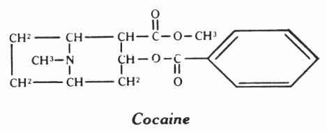 [index]COCAINEby Michael Valentine SmithThe leaves of Erythryoxylon coca, from which cocaine is obtained, were used by the Incas at least 1,000 years ago. The annual consumption of coca leaf in South America (mainly Bolivia and Peru) by about twenty million users amounts to about 150,000 pounds of cocaine. They chew their leaves with lime (CaO, etc.) which degrades cocaine to ecgonine - but this compound still relieves hunger and fatigue. Cocaine produces little effect orally, so sniffing is the preferred route of administration. Regarding its supposed aphrodisiac properties, it is interesting that one native legend ascribed the magical origin of the coca leaf to the fascination of a conqueror for the bright eyes of a princess who loved him to death. The plant grows in Australia and Africa, as well as in Western South America, and much cocaine was produced in Java. Other species of the genus seem to produce little or no cocaine. Coca-cola got its name from the coca leaf extract which it contained (as did a variety of wines) until 1904. Neither tolerance nor physical addiction to cocaine seem to occur, so sniffing it occasionally should be quite safe.