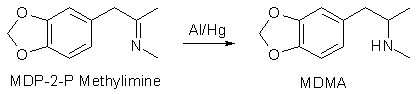 Who Needs Methylamine Anyway?By Ritter, edited by the Professor, Dedicated to EleusisPublished in Total Synthesis II by Strike The following procedure may prove to be one of the largest advances in the field of MDMA chemistry since the perfection and dissemination of the Wacker oxidation procedure for producing MDP2P. This reaction is based on a published process that somehow has escaped discovery by underground chemistry until now. Methylamine is no longer a stumbling block in the aluminum amalgam reductive alkylation method of producing MDMA as this procedure produces this impossible to obtain and fickle to make material, in situ, during the reductive alkylation of MDP2P to MDMA from very common nitromethane. Nitromethane when subjected to the simplest of reductions forms methylamine, so why not make methylamine at the same time MDMA is being produced instead of going through the hassle of making it separately? Nitromethane is a very common material. Just go down to your local drag strip and pick up a gallon or two for doping your high performance car’s fuel. It’s also available up to 40% pure in RC model fuels. Simply fractionally distill the nitromethane (bp 101°C) out of the model fuel mixture and you’re ready to go. If methanol is present in the fuel formulation, some will azeotropically distill over with the nitromethane lowering its boiling point slightly, but this does not present a problem. So, how does this whole thing work? It’s as simple as it sounds. An alcoholic solution of nitromethane and MDP2P is dripped into a mass of amalgamated aluminum immersed in alcohol first reducing the nitromethane to methylamine, allowing the Schiff base of the amine and ketone to form which is further reduced to the desired MDMA.