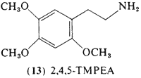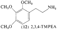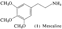 The simplest aromatic system encountered is the benzene ring, and one of the largest classes of psychotomimetic drugs are the substituted phenethylamines. 3,4,5-Trimethoxyphenethylamine (mescaline, 1) will be considered as a prototype chemical, and variations on its structure will be the basis of the classification of this section.