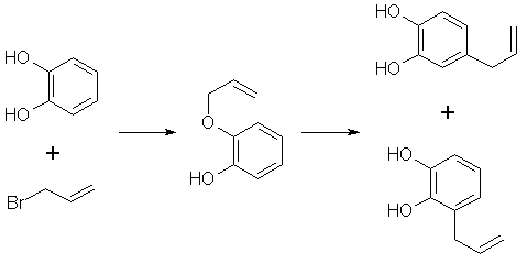 Feugaes[18] reports an 87% yield of safrole (abbreviated R-CH2=CHCH2) from benzodioxole (3,4-methylenedioxybenzene,