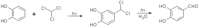 In a fume hood. A solution of 15.2 g (0.1 mole) of vanilla in 45 ml of nitrobenzene at 15°C is treated with a solution of 53.4 g of anhydrous aluminum bromide in 60ml of nitrobenzene. 125 ml of nitrobenzene are added to the gel which forms with stirring. (do not breath nitrobenzene vapors or let contact with skin. If contact occurs flush area with water for 15 min.) Heat solution to 95°C and then let cool to room temperature. Allow to stand at room temperature for 30 minutes. The dark mixture is cooled and added to IL of water containing a little HCl. The mixture is extracted with ether and the ether is then extracted with 5% sodium hydroxide solution. The hydroxide solution is washed with ether and then acidified with dilute sulfuric acid. The acidic solution is extracted with ether, dried, and then distilled off to leave 12.8 g of protocatechualdehyde. Methylenate this with the procedure listed in the safrole section replacing the 4-allyl catechol with 138 g of protocatechualdehyde. Hayashi and Namura[32] discuss demethylation during the pulping process and conducted experiments on individual components under such conditions. Eugenol and vanillin were both demethylated by cooking with either 5% NaOH or 5% Na2SO4, 1% NaHCO3 and H2O. The degree of demethylation is not given in the abstract but it is in the paper which luckily is in English if one cares to look it up. The reaction does proceed slowly. Isosafrole