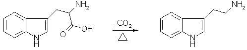 Decarboxylation is accomplished by mixing about 80 g tryptophan in 250 mL